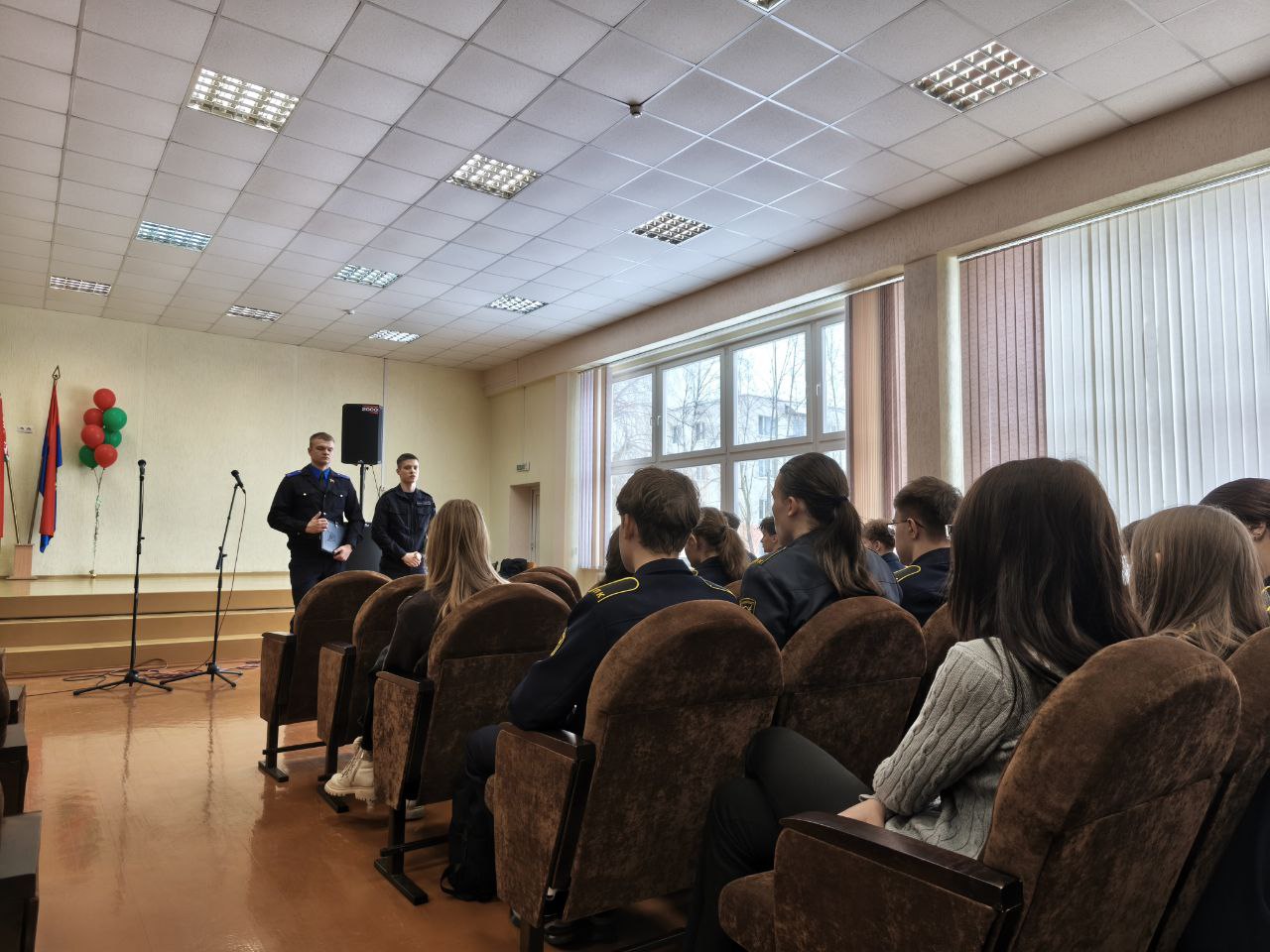 Курсанты 3-го курса следственно-экспертного факультета Алексей Якубик и Дмитрий Снопко совместно с сотрудниками Лидского РОСКЯ провели профориентацию для учащихся правового класса Следственного Комитета в ГУО «Средняя школа № 4 г.Лида».