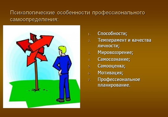 - выбираемая профессия и будущий род занятий;