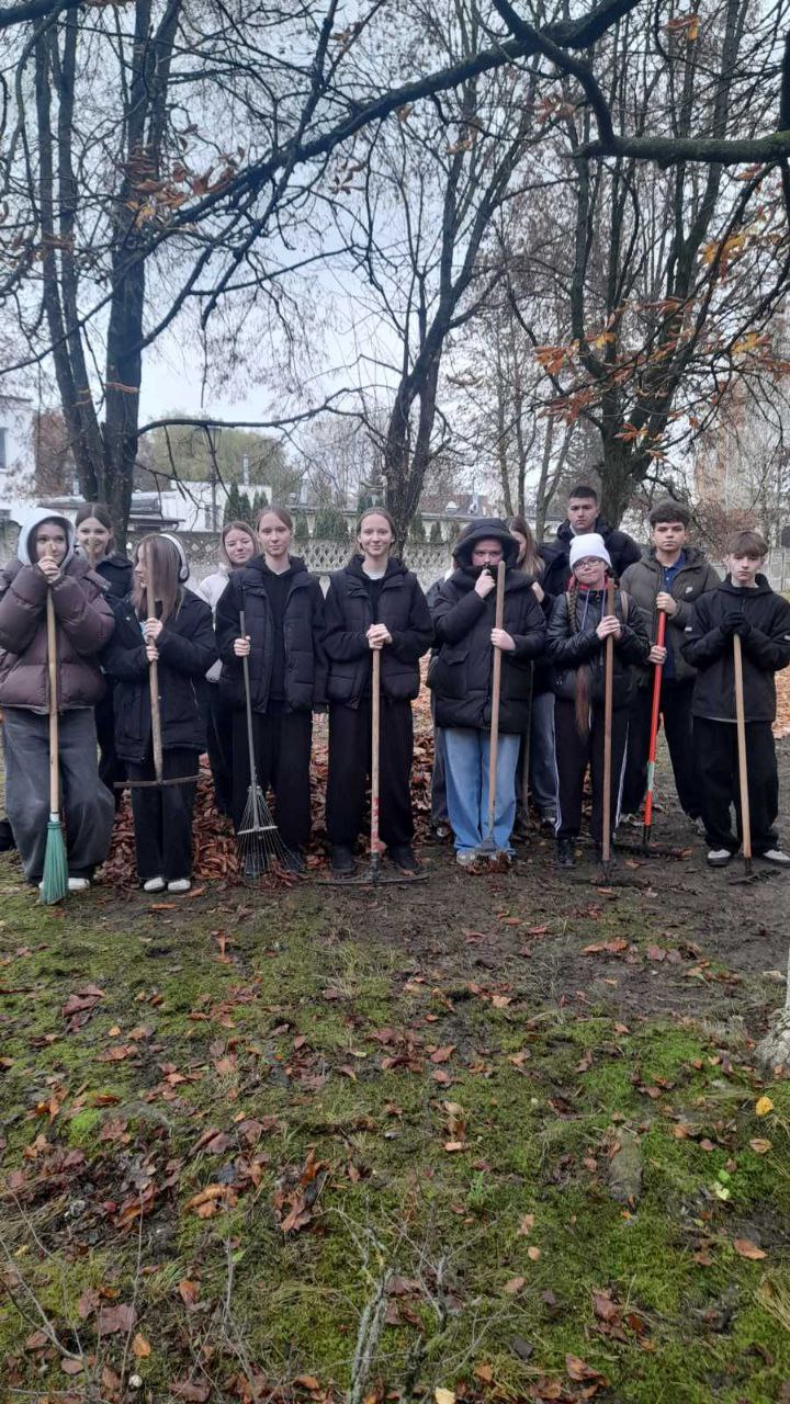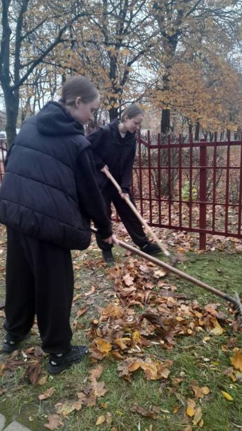 3 ноября старшеклассники нашей школы провели трудовой десант по уборке территории школы и братской могилы подпольщиков и партизан, погибших а годы Великой Отечественной войны.