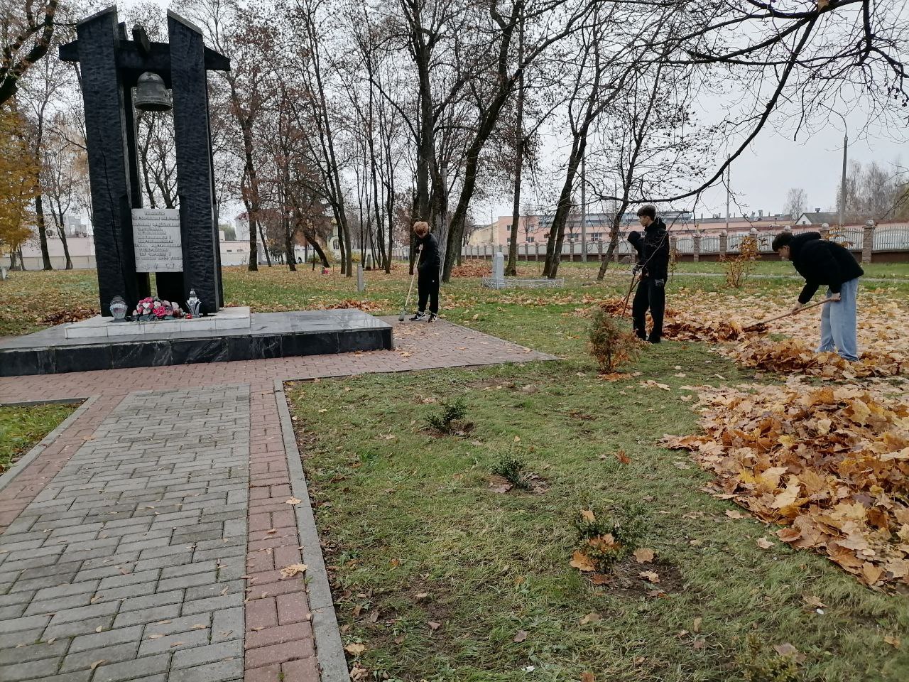 3 ноября старшеклассники нашей школы провели трудовой десант по уборке территории школы и братской могилы подпольщиков и партизан, погибших а годы Великой Отечественной войны.